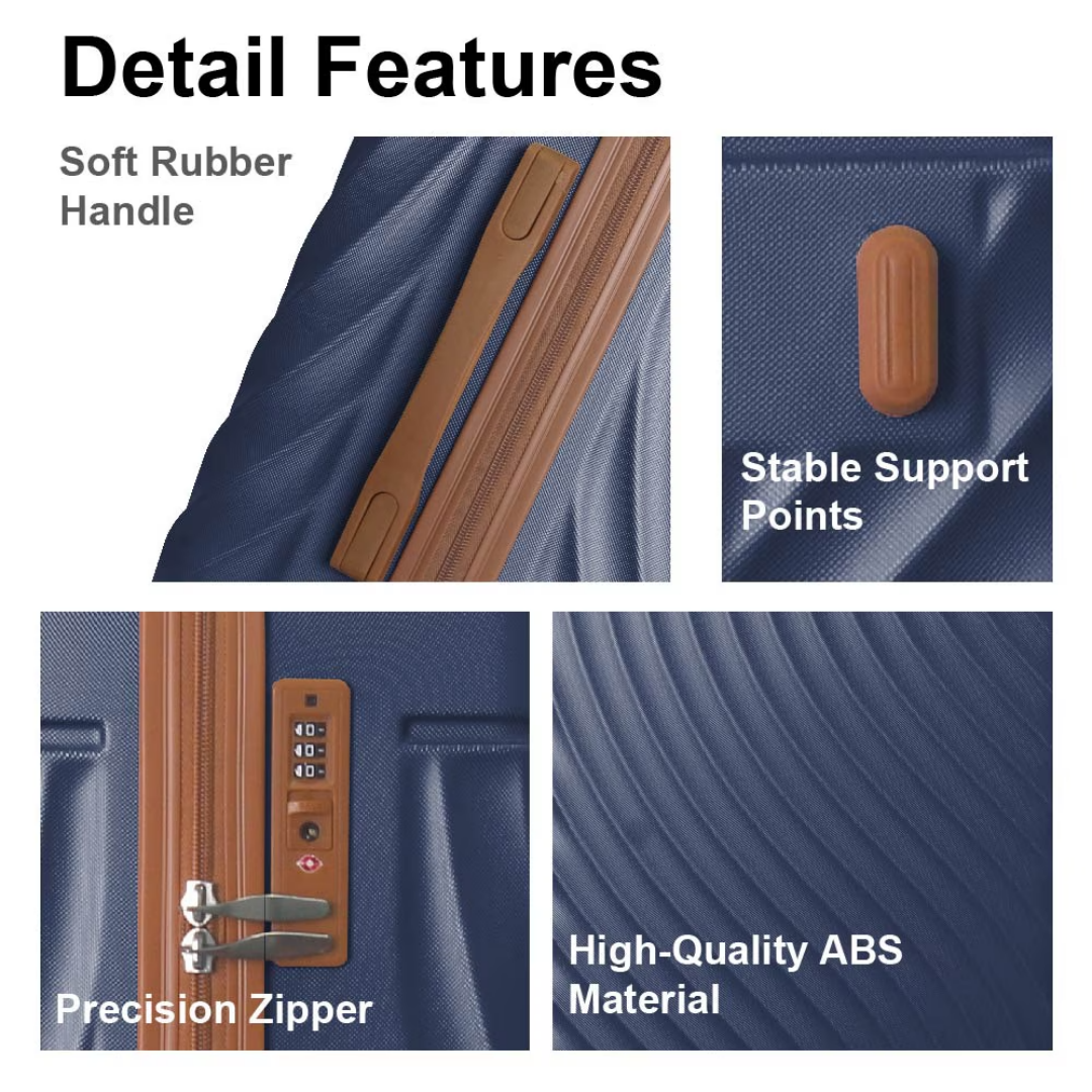 Product Name: Luggage Sets ABS Hardshell 3pcs Luggage, Lightweight Durable Suitcase sets Spinner Wheels Suitcase with TSA Lock 20''24''28'' Available(Navy Blue)