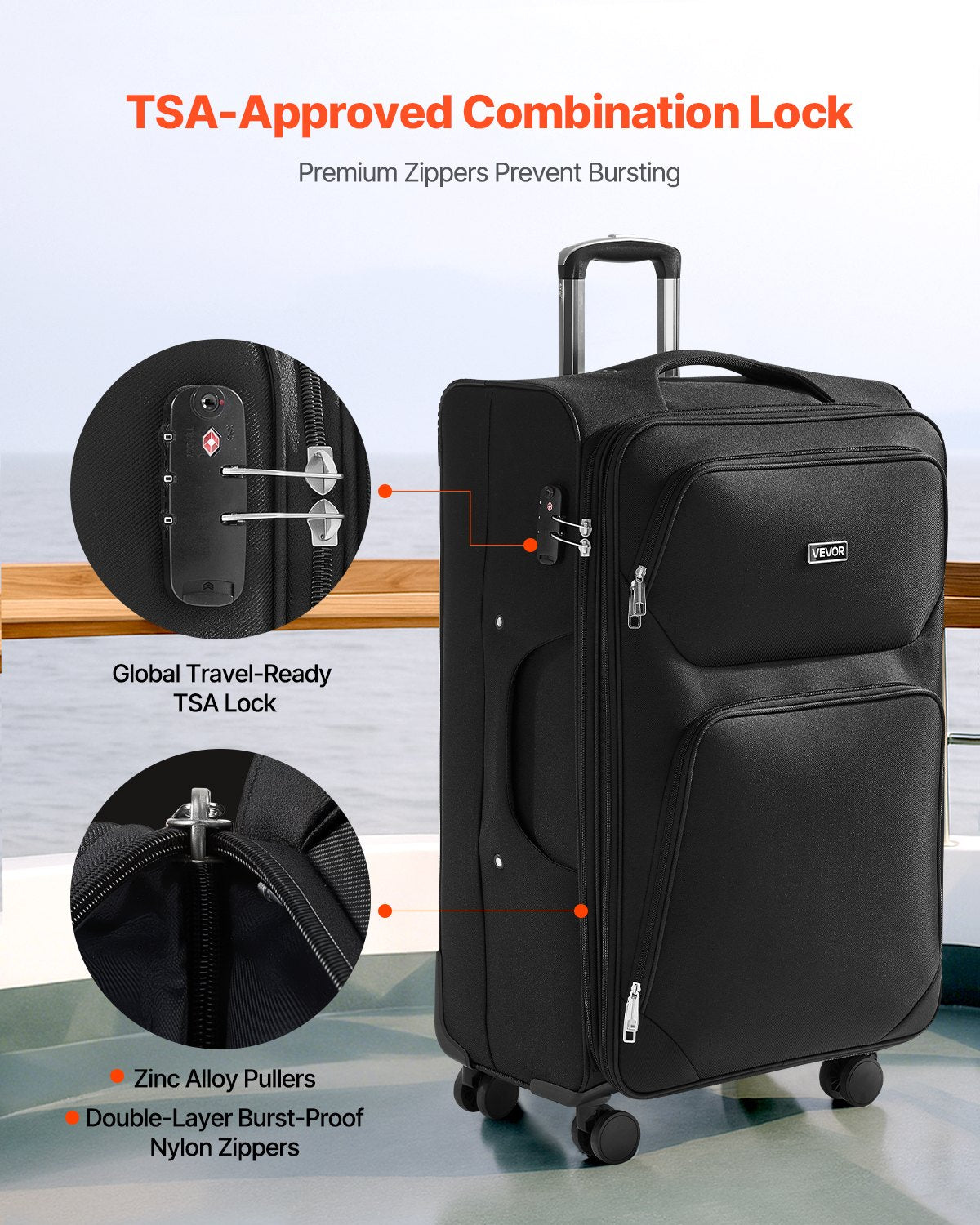 Secure and Reliable: Equipped with a TSA-approved combination lock, this soft side luggage allows airport staff to open it easily with a key for inspection, preventing forced entry. The smooth zipper is easy to pull, reinforced with multi-strand stitching for strong interlocking and durability, making it resistant to zipper breakage
