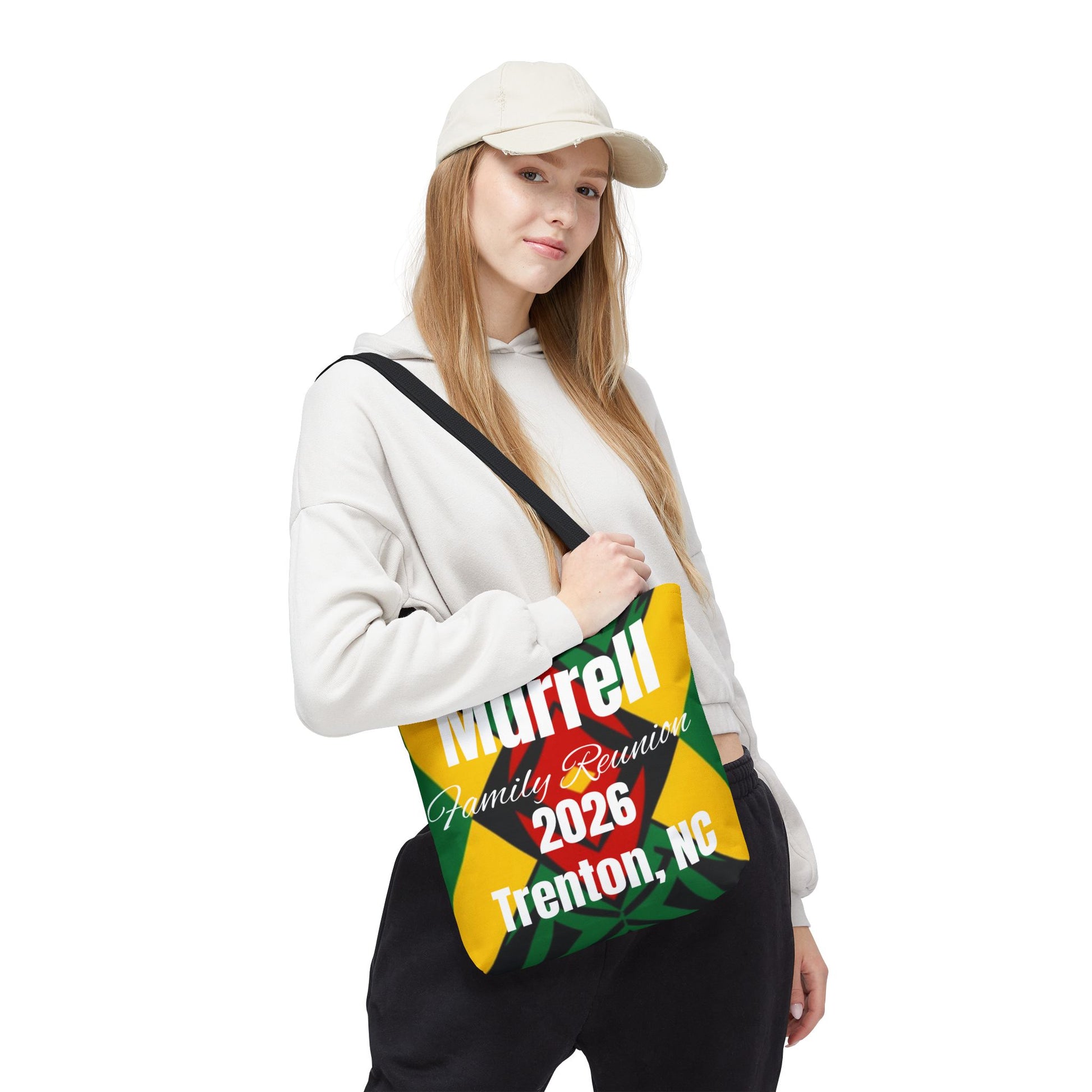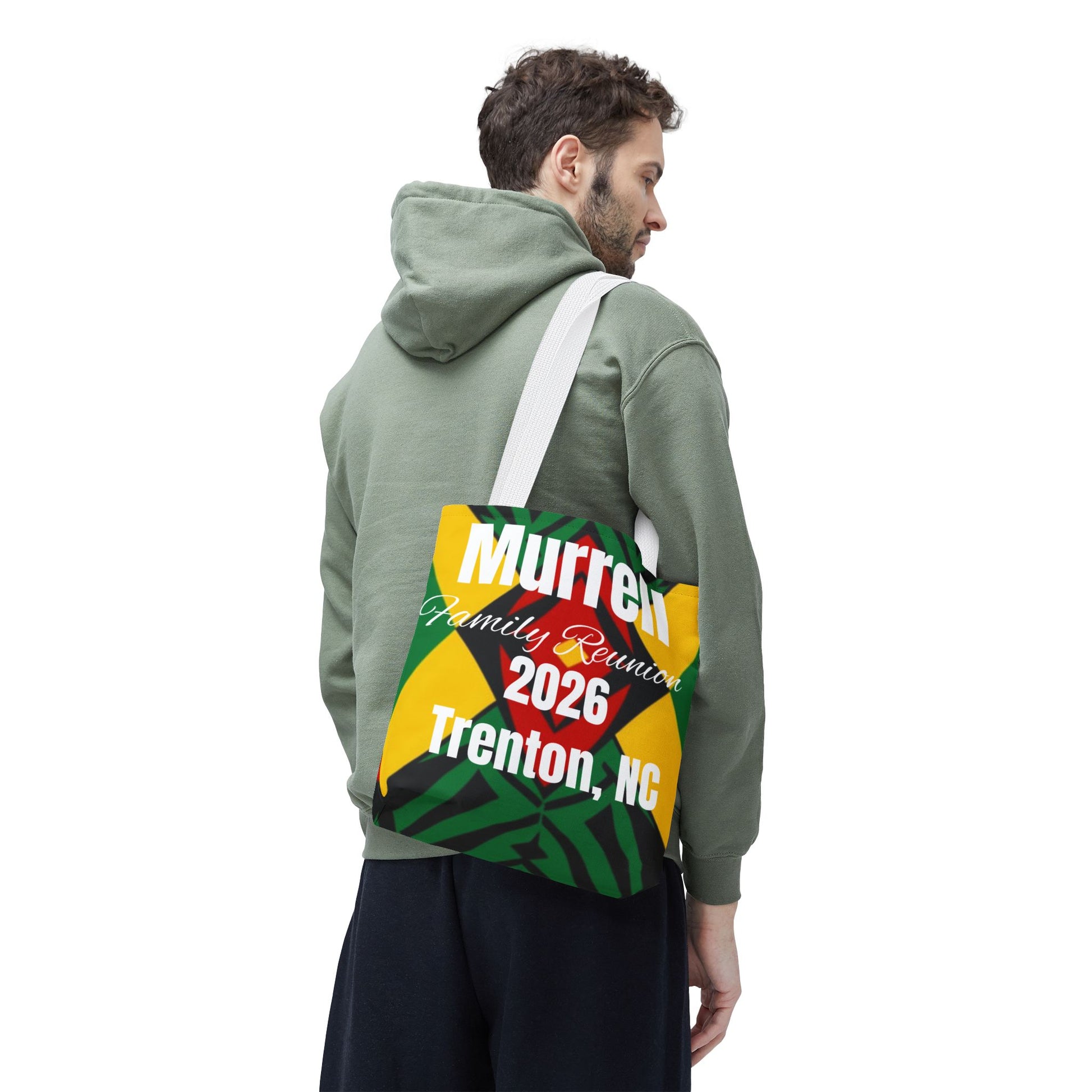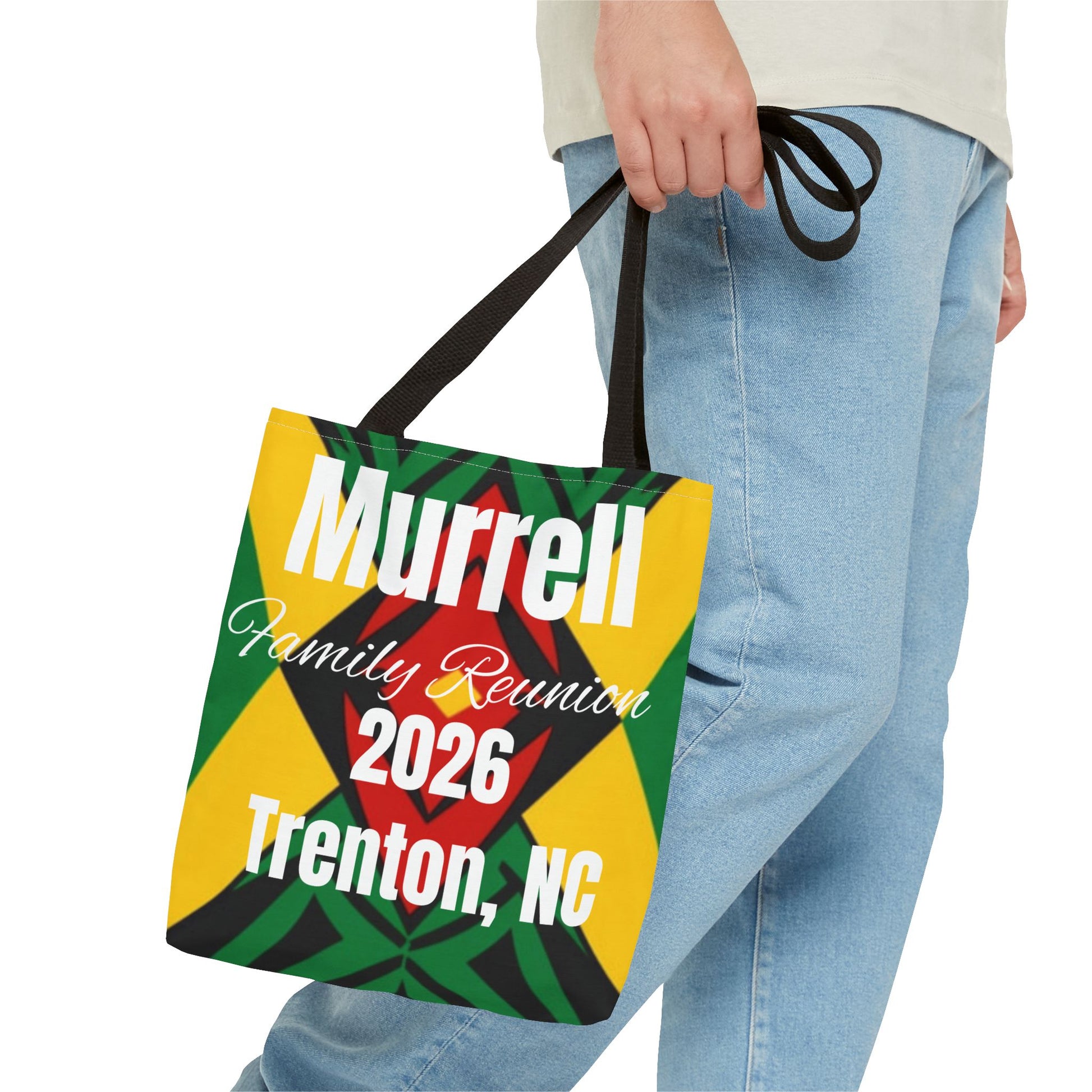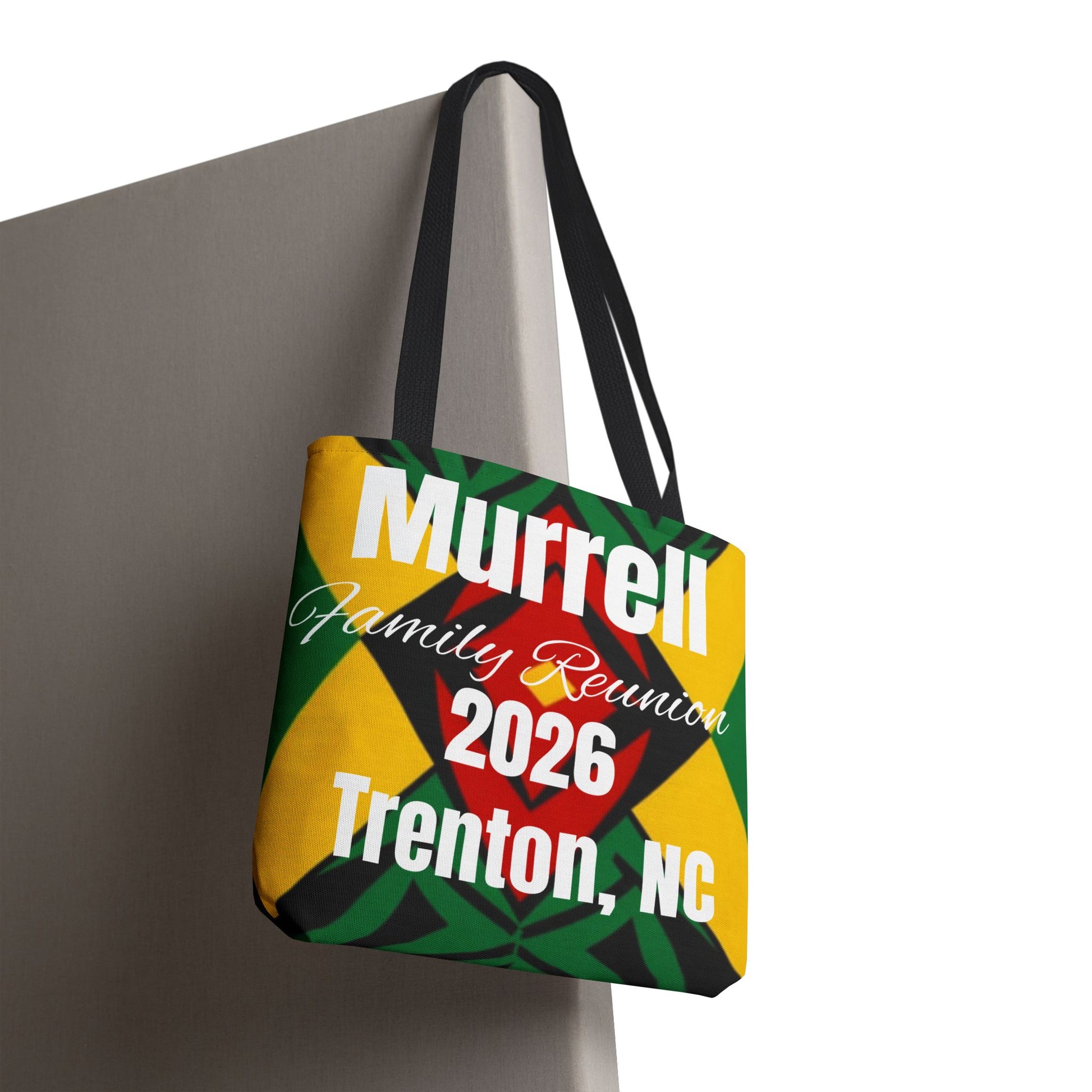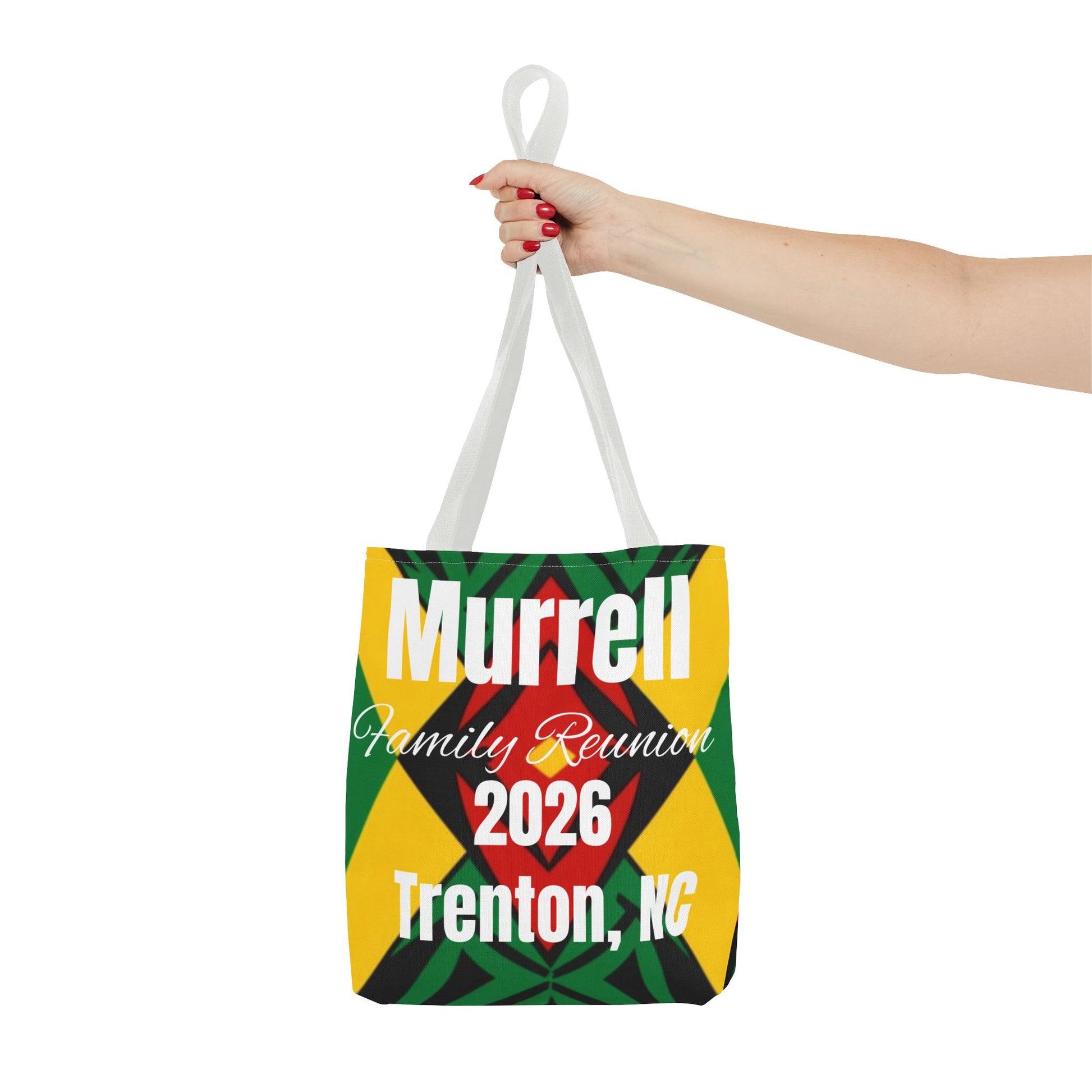 Vibrant Family Reunion Tote Bag This 100% polyester tote combines durability with eye-catching design. Reinforced handles and boxed corners maximize storage capacity, while seamless stitching delivers a polished finish. Quick-drying fabric makes it practical for travel, events, and daily use. Available in multiple sizes and handle color options to suit your style.